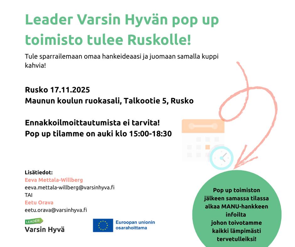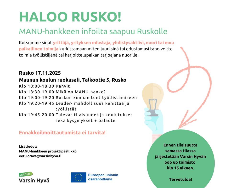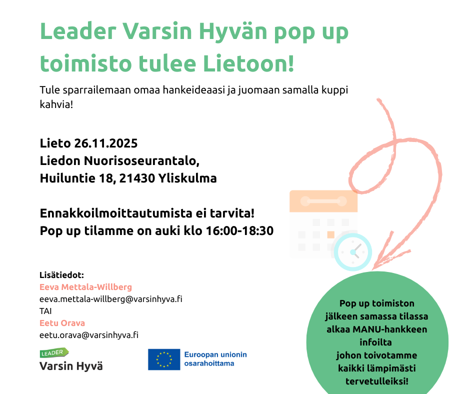 Varsin Hyvä on Leader-ryhmä ja maaseudun kehittämisyhdistys, joka rahoittaa yleishyödyllisiä kehittämis- ja investointihankkeita sekä tukee maaseudun yritystoimintaa. Toimialueemme kattaa kaikki Turun seudun kunnat (pl. Mynämäki), Taivassalon ja kaupungeista maaseutualueet.